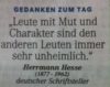 Wir glauben an die Wahrheit: Sie zu suchen, nach ihr zu forschen in und um uns, muss unser höchstes Ziel sein. Damit dienen wir vor allem dem Gestern und dem Heute. Ohne Wahrheit gibt es keine Sicherheit und keinen Bestand. Fürchtet nicht, wenn die ganze Meute aufschreit. Denn nichts ist auf dieser Welt so gehasst und gefürchtet wie die Wahrheit. Letzten Endes wird jeder Widerstand gegen die Wahrheit zusammenbrechen wie die Nacht vor dem Tag!“ (Theodor Fontane 1819-1898)