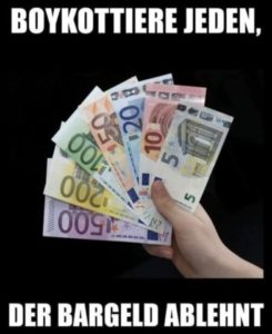 Vergiss das Gerede darüber, dass Bargeld „schmutzig“ sei. Lass dich nicht so leicht manipulieren. Bargeld gibt es seit sehr, sehr, sehr langer Zeit und es gibt dir die Kontrolle darüber, wie du mit der Welt handelst. Es gibt dir Unabhängigkeit. Ich hörte eine Geschichte, in der ein Mann angeblich Covid bekommen habe, weil er einen 20-Dollar-Schein angefasst hatte. Die Wahrscheinlichkeit, dass Covid auf einer Karte ist, ist dieselbe wie auf Bargeld. Wenn du nicht erkennst, wie lächerlich diese Annahme ist, dann gibt es wenig Hoffnung. Wenn du Kunde bist, zahle bar. Wenn du Ladenbesitzer bist, entferne diese lächerlichen Schilder, die Karten verlangen. Bargeld ist gesetzliches Zahlungsmittel; es ist unser Recht, mit Bargeld zu bezahlen. Banken machen es zunehmend schwierig, Bargeld einzuzahlen – und das hat weder etwas mit einem Virus zu tun noch mit diesem „schmutziges Geld“-Trend. Bitte öffne deine Augen. Bitte hör auf, alles zu glauben, was dir erzählt wird. Fast jedes Thema in der heutigen Welt ist von Korruption und versteckten Agenden durchzogen. Hör bitte auf, mir und anderen wie mir zu sagen, wir seien das Problem dieser Welt, während du die korruptesten Mitglieder der Gesellschaft als Helden feierst. Politik und Gier sind das Problem – nicht diejenigen, die versuchen, dich auf die Realität aufmerksam zu machen, in der du blind dahintreibst, gelähmt von irrationaler Angst. Angst, die geschaffen wurde, um dich genau das tun und glauben zu lassen, was du ohne Widerspruch akzeptierst. Zahle bar – und sag Nein zu einer bargeldlosen Gesellschaft, solange du noch die Wahl hast. Info.