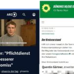 Sie werden nur noch angelogen und betrogen: Der von Phoenix zur Wehrpflicht Abstimmung interviewte ehemalige Schülervertreter sitzt im Kreisvorstand der Grünen Rems-Murr, was die Zuschauer nicht erfahren. In der sogenannten Demokratieabgabe ist schließlich kein Anrecht auf Transparenz enthalten. Wäre ja noch schöner, wenn der Pöbel für seine abgepressten Beiträge auch noch erwarten dürfte, ungetrübt informiert zu werden.