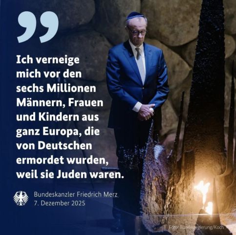 Was für eine Heuchelei und Scheinheiligkeit?: Merz verneigte sich in Israel vor den sechs Millionen Männern, Frauen und Kindern aus ganz Europa, die von Deutschen ermordet wurden, weil sie Juden waren. Er verneigte sich aber nicht vor den vielen ermordeten, palästinensischen Kindern, Männern und Frauen, die sein Freund und Massenmörder Netanjahu mit DEUTSCHEN Waffen bis heute noch ermordet. Keine Scham über die politisch organisierte Antifa-Parolen in Deutschland, „kauft nicht bei Russen, kauft nicht bei AfDlern“, wie ist das mit der Zensur und mit der Bücherverbrennung?