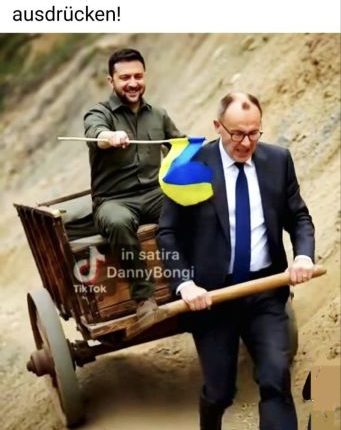 Hallo Deutsche Steuerzahler!: Jetzt, wo das alte Jahr 2025 zu ENDE ist, möchten wir uns für die reichhaltigen Spenden bedanken, die über Eure Regierung uns zugeflossen sind, damit wir Ukrainer die Russen besiegen können. Das wollt Ihr doch auch! Und besonders freuen wir uns über Panzer! Sie sind auch alle angekommen, wurden pünktlich und auf Bestellung geliefert! Leider haben die verfluchten Russen sie auf der Zufahrtsstraße nach Pokrowsk entdeckt und einfach zusammengebombt! Deshalb war es sehr nett, dass Ihr, gerade zur Weihnachtszeit, weiter Euer Geld spendeten, damit wir Nachschub bekommen. Denn in der Stadt sind 1000 Kameraden eingeschlossen, und wir wollen sie raushauen! Und Ihr Deutsche Rentner! Sammelt doch einfach ein paar Pfandflaschen mehr als sonst! Spendet uns Euer überschüssiges Geld! Auch wir verzichten gerne für den Endsieg! Wir haben doch alle die gleichen Werte, Überzeugungen und Traditionen! Die sind unverbrüchlich und haben über die Jahrzehnte gehalten! Slava Ukrainij. Deshalb ruft der CDU-OB in Ravensburg auf der Bühne auch, „Slava Ukrainij“ und hebt den Arm hoch.