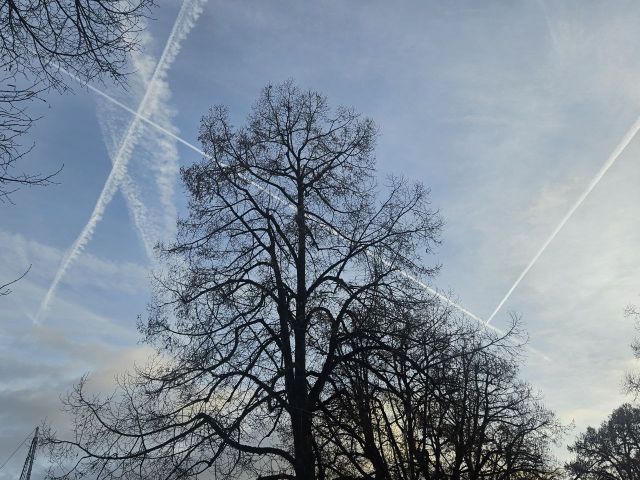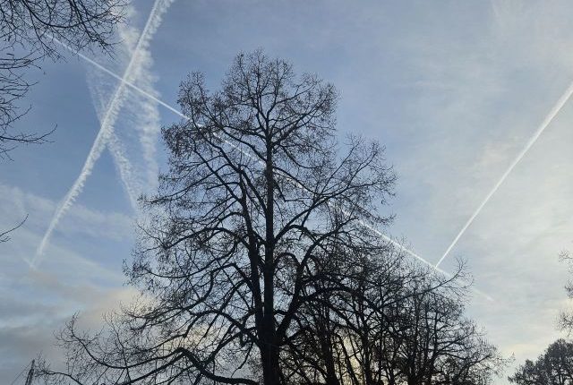 Nur normaler Flugverkehr?… Sie sind nicht krank, Sie werden regelrecht vergiftet. Sehen Sie sich täglich diesen Himmel an…, blauer Himmel und Sonne unerwünscht, was für eine totale Katastrophe, und wir können unseren Regierungen dafür danken, dass sie dies genehmigt haben! Die Geoengineering-Programme laufen jetzt ununterbrochen, Tag und Nacht. All die Giftstoffe, die in unsere Luft abgegeben werden, werden ohne unsere Zustimmung ausgebracht! Es soll am Boden nichts mehr wachsen, Mensch und Tier sollen dezimiert werden! Völkermord ist IHR Auftrag?