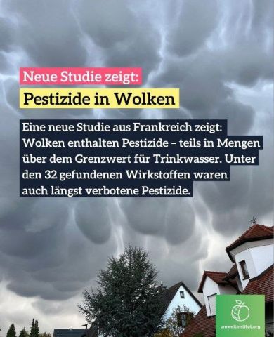 Die schlechte Nachricht ist, dass sie alles Leben auf der Erde vernichten wollen, angefangen bei Insekten, Bienen, Vögeln und Schmetterlingen, indem sie weiterhin Metallpartikel in die Atmosphäre sprühen und die Sonne verdecken! Die gute Nachricht ist, dass endlich alle beginnen, dies zu erkennen. Nur nicht in Ravensburg, die Schlafschafe erkennen immer noch nicht das SIE jeden Tag und Nacht aus der Luft und am Boden vergiftet werden. Wann wachen die Menschen endlich auf?: Sie sind nicht krank, Sie werden regelrecht vergiftet, der Genozid kommt auch aus den Wolken, nicht nur über die Spritzen, weil Völkermord ist ihr Auftrag. Eine neue Studie aus Frankreich zeigt, Pestizide in Wolken. Wolken enthalten Pestizide-teils in Mengen über dem Grenzwert für Trinkwasser. Unter den 32 gefundenen Wirkstoffen waren auch längst verbotenen Pestizide.