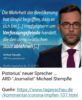 SWR 1 Nachrichten vom 16.5.23 Thema Polizeigewalt: Auch wir haben alles gesichert was in Deutschland passiert ist, auch vom Herrn Polizeipräsident Stürmer und OB Rapp. Wir lassen über unseren Diplomaten in den USA, in Genf und in Bern alle in die persönliche Haftung nehmen, auch Herr Stürmer ist mit dabei. Es wird zu gegebener Zeit internationale Gerichte und Generalstaatsanwaltschaften geben, die alle Vergehen und Straftaten aufarbeiten werden.