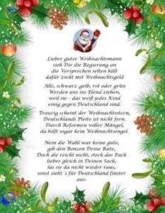 Advent, Advent : Stoppt den Krieg gegen Weihnachten! Rettet das Christentum! Wir wollen kein Kalifat, keine Islam-Partei und keine Scharia! Erst wenn Weihnachten im Herzen ist, liegt auch Weihnachten in der Luft. Ein Weihnachtsbaum macht noch lange keinen Weihnachtsmarkt, die dazugehörige Menschlichkeit fehlt überall. Wie schon so oft hilft der Glaube allein nichts, wir müssen endlich ins TUN kommen. Wir müssen endlich die Meineide anklagen, weil keiner hält seinen Eid ein. „Ich schwöre, dass ich meine Kraft dem Wohle des deutschen Volkes widmen, seinen Nutzen mehren, Schaden von ihm wenden, das Grundgesetz und die Gesetze des Bundes wehren und verteidigen, meine Pflichten gewissenhaft erfüllen und Gerechtigkeit gegen jedermann üben werde. (So wahr mit Gotte helfe), Das Wüst-Land- NRW hat diese Eidesformel abgeschafft, da gibt es kein Volk mehr. Liebe, herzliche Grüße, bald ist das Jahr zu ENDE, und nichts hat sich zum Guten verändert. Merkt EUCH endlich: Es gibt nur einen Gott, aber viele Wege zu ihm. Dann hört auf über Religionen zu diskutieren, zu urteilen und zu streiten. Weiterlesen. Eine andere Weihnachtsgeschichte — wahre Begebenheit aus 1944. Weiterlesen.