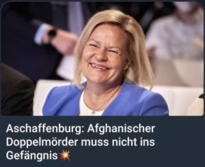Freundeskreis Asyl: Deutsche sind faul und dumm… Oder wie darf man das verstehen? 560 Millionen Euro: Die Linke-Faeser will Extra-Geld für Flüchtlinge, für Islamisten-Terror, Messer-Morde, Demos. Neues Blutbad in einem mehrgeschossigen Mietshaus, so soll die Zukunft von Faeser Deutschland aussehen?