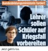 Genau so ist es, die Kinder gehören zum Eigentum des Staates: Die Eltern dürfen als sogenannte Erziehungsberechtigte, ohne Rechte, auf eigene Kosten, nur die Aufzucht betreiben. Schulleiter wird in sozialen Medien als »Gargamel« bezeichnet: Die Schlümpfe werden zum politischen Symbol – Die Schlümpfe sind kleine, blaue Comic-Figuren, die 1958 von dem belgischen Zeichner Pierre Culliford alias Peyo erfunden wurden. Sie leben in ihrem fiktiven Dörfchen, erleben Abenteuer und werden von dem fiesen Zauberer Gargamel verfolgt, der sie unbedingt fangen will. Jetzt werden sie zum politischen Symbol in Deutschland. Stark-Watzinger: Schulen sollen Schüler auf Kriegsfall vorbereiten – Bundesbildungsministerin Bettina Stark-Watzinger (FDP) fordert, dass Kinder mit Zivilschutzübungen an Schulen auf den Kriegsfall vorbereitet werden. Die Bildungsministerin Simone Oldenburg in MV war Ex-SED, so soll DDR 2.0 und die Zersetzungsrichtlinien wieder eingeführt werden, Stasi Forever und Schwarzbraun ist die Haselnuss, hier. Einzug der Bundeswehr an deutschen Schulen. Die SED-Linke-Bundesministerin für Bildung und Forschung möchte die Kriegsvorbereitung nun auch an unseren Schulen Einzug halten lassen. Auch die Schwab-OB-DDR-MdL-Oberstleutnant-Schuler, CDU-Kriegstreiber in Ravensburg sind hellauf begeistert.