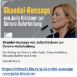 CDU-CSU, eiskalt und Gewissenlos?: Unglaubliche Skandal-Aussage von Julia Klöckner zur Corona-Aufarbeitung. Ein Schlag ins Gesicht aller Opfer, freien Aufklärer, Wissenschaftler und Ärzte. Das maskenfreie Bild von Spahns Spendendinner beweist einmal mehr, dass die größten Panikmacher der Politkaste (samt Umfeld) genau gar keine Angst vor einer Infektion hatten. Nicht einmal Steinmeier, der ja angeblich zur Risikogruppe gehörte. Noch immer glauben große Teile der Bevölkerung die Lügen. Weiterlesen hier und hier. Was die Politik alles schon vorher wusste: Und Klöckner, CDU, behauptet von nichts gewusst zu haben, so wird das Volk nur noch belogen. Trotzdem haften sie alle persönlich für alle Schäden die sie am Menschen angerichtet haben. Brisante Studie von Geimpften gegen Ungeimpfte, die jetzt endlich veröffentlicht wurde, ist erschütternd. Nach 5 Jahren Unterdrückung wurden die Ergebnisse der Vax-vs.-Unvax-Studie von Dr. Marcus Zervos (Henry Ford Health, Detroit) endlich öffentlich: 18.468 Kinder untersucht Asthma: 4x häufiger bei Geimpften, Ohrinfektionen: 6x häufiger, Sprachstörungen: 4,47x häufiger. Ungeimpfte: 0 Fälle von Diabetes, Lernschwierigkeiten, geistigen Behinderungen, Tics oder psychischen Störungen. Nach 10 Jahren: 17 % der ungeimpften Kinder hatten ein chronisches Leiden, 57 % der geimpften Kinder waren chronisch krank. Das Risiko für chronische Erkrankungen ist bei Geimpften mehr als verdreifacht! Diese Daten wurden jahrelang verschwiegen – weil ihre Veröffentlichung Karrieren zerstört hätte. Dank Del Bigtree, The Highwire & Aaron Siri sind die Ergebnisse jetzt da. „Das ist verheerend.“ Sie sollten sich allesamt und Grund und Boden schämen.
