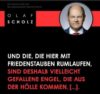 Gefallene Engel aus der Hölle? Ein arroganter, korrupter Scholz probierts mit Okkultismus…und scheitert. Wenn man sich für den Frieden einsetzt, bist du laut dem deutschen Bundespräsident „ein gefallener Engel der aus der Hölle kommt“. Man merkt es an der Reaktion, was die Leute davon halten. Wen das friedliche, arbeitende Volk gefallene Engel aus der Hölle sind, dann sind Steinmeier und Scholz die Teufel in Person, die direkt als Deep State Abgesandte aus der Hölle auf die Erde kommen? Wieso stellen die CDU, gemeinsam mit der AfD, keinen Mißtrauensantrag, weil die gesamte Ampel muss endlich weg.