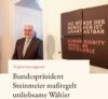 Frage der politischen Neutralität des Staates zum Thema: Sind wir auf dem Marsch in eine „Antifaschistische Republik Deutschland“? DDR 2.0 und die Zersetzungsrichtlinie 1/76: Der SED-Thüringer Enteignungsminister Bodo Ramelow fordert Grundgesetz-Abschaffung und eine „neue Verfassung“ mit DDR-Anlehnung. Steinmeier hätte die Kontinuität einer explizit auf der Linken bis tief in die SPD (und später die Grünen) kultivierten Feindschaft gegenüber dem Staat und der Ordnung des Grundgesetzes in Erinnerung rufen können. Stattdessen mündete seine Rede in eine unverhohlene Feinderklärung Richtung AfD, die er zwar nicht beim Namen nannte, aber unzweifelhaft meinte, als er forderte „robust und wehrhaft schon im Alltag“ und mit „kämpferischem Widerspruch“ Freiheitsfeinden entgegenzutreten. Mit diesen Worten hätte Steinmeier die linksextreme Antifa thematisieren können, die beispielsweise in Hessen Listen mit den Privatanschriften aller AfD-Landtagskandidaten veröffentlicht hat und dazu aufruft, diesen „auf militante Weise“ zu „begegnen“ und „ihnen das Leben zur Hölle zu machen“. Stattdessen rückte Steinmeier die Wahl der AfD verbal in die Nähe einer Straftat, wenn er meint, kein Wähler könne sich „auf mildernde Umstände herausreden, wenn er sehenden Auges politische Kräfte stärkt, die zur Verrohung unserer Gesellschaft und zur Aushöhlung der freiheitlichen Demokratie beitragen“. Intention der Schöpfer des Grundgesetzes war es übrigens, den Bundespräsidenten im Gegensatz zu Weimar dem Parteienstreit zu entziehen – indem er nicht direkt durch das Volk in einem polarisierenden Wahlkampf ins Amt gelangt. Er soll überparteilich für Ausgleich sorgen. Steinmeier macht das Gegenteil. Statt zu versöhnen, spaltet er. (Dieter Stein, Cheredakteur JF).