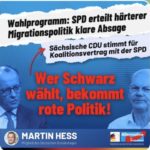 Martin Hess: Während die CDU an ihrer undemokratischen Brandmauer gegen unsere AfD festhält, öffnet sie gleichzeitig Tür und Tor für linke Radikale und ehemalige DDR-Schergen. Jüngstes Beispiel: In Thüringen wurde mit Unterstützung der CDU der Ex-Stasi-Mitarbeiter Tilo Kummer (BSW) zum Minister für Umwelt, Energie, Naturschutz und Forsten ernannt. Wer bereit ist, Unterstützer eines Regimes in höchste Ämter zu hieven, verrät nicht nur die eigene Wählerschaft, sondern verhöhnt sämtlicher Opfer des DDR-Unrechtsstaates. Es regt sich nun leiser Widerstand in den Reihen der Thüringer CDU. Ein deutliches Zeichen für die innere Zerrissenheit dieser Partei. Kreisverbände bezeichneten diese Personalentscheidung als „historischen Tiefpunkt“. Doch Mario Voigt hat bereits eine rote Linie überschritten, als er entschied, mit dem BSW zu koalieren, in dem nachweislich SED-DNS vorhanden ist. Für Macht ist die CDU gern bereit, ihre konservativen Grundwerte über Bord zu werfen. Das beweist auch den gefährlichen Linksruck, der in der gesamten Partei zunehmend sichtbar wird. Auch auf Bundesebene träumt Friedrich Merz von einem Bündnis mit den Grünen und sucht immer wieder die Nähe der SPD. Solche Zustände sind inakzeptabel. Nur wir wehren uns gegen die Verharmlosung linker Ideologien. Deutschland braucht endlich wieder echte konservative Politik. Dafür steht nur die AfD! Die CDU zeigt hingegen: Ihre Brandmauer ist eine Farce – sie gilt nur gegen unsere AfD, die sich konsequent für Bürgerrechte, Demokratie und Freiheit einsetzt. Gegen Linksextreme und DDR-Erben scheint diese Mauer jedoch nicht zu existieren. Zehn-Punkte-Sofortprogramm einer AfD-geführten Bundesregierung..