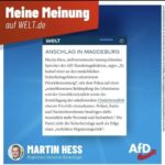 Hier erfahrt Ihr vom Magdeburg Attentäter selbst das er politisch kein Rechter – sondern ein Linker ist. Entgegen den Lügenbehauptungen von Faeser und den BRD Lügenmainstreammedien – die verbreiten das er politisch angeblich rechts sei, und der AFD nahestehen würde! Schaut hierzu bitte auch hier und hier und in den dortigen Links! FAZIT: Dieser Terroranschlag ist ein gefundenes Fressen für Faeser und die Lügenmedien, um Schmutz und Lügen auf die AFD zu werfen, um sie damit im Wahlkampf entscheidend zu schwächen!