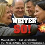 Bundeskanzler Scholz traf am 21.12. Vormittag in Magdeburg ein und wurde trotz Abschottung gebührend empfangen. Begleitet wurde er vom Ministerpräsidenten Sachsen-Anhalts und der Bundesinnenministerin, die mit ihrer Behörde eigentlich unmittelbar für die Verhinderung solcher Terroranschläge zuständig ist, sich aber stattdessen lieber mit der Verfolgung von Politikern und Medien mit anderer Meinung beschäftigt.