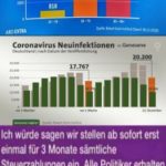 Das sind die Slogans einer kriminellen Ministerpräsidenten-Vereinigung: Altmaier, kauft keine Geschenke vor dem Lockdown. Merkel-Lockdown-Lügen. Bis Anfang Januar? Jens Spahn, man würde mit dem Wissen heute keinen Einzelhandel mehr schließen. SED-Kretschmer will wörtlich, autoritäre Maßnahmen. SPD-Lauterbach und Antifa, grüner Kretschmann wollen Gesangsverbot in deutschen Kirchen. Am laufenden Band, ein Lügen-Lockdown tut Not! Mediale Massenhysterieverbreitung. Coronavirus ist globaler »Betrug«, der jetzt von China ausgenutzt wird. BioNTech-Pfizer-Impfung, bis zu 84 Prozent Nebenwirkungen.
