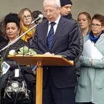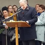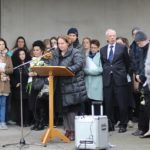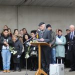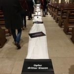 Aus Württemberg und Baden wurden 556, aus Stuttgart allein 261 Sinti und Roma vom Nordbahnhof in Viehwagons in die Konzentrationsläger deportiert, sie dürfen nicht aus dem Gedächtnis verschwinden. Kinder der Bischof von Lipp-Schule, St. Josefs-Pflege, Mulfingen haben die ermordeten mit Rosen bedacht, jede Rose trug einen Namen. Jeder Kirchenbesucher bekam am Schluss diese Rosen mit, um sie in die Welt hinauszutragen oder am Mahnmal Nordbahnhof niederzulegen. Am Nordbahnhof spürte man die Vergangenheit, aber auch die Gegenwart und die Realität. Einige Tage vor dieser Gedenkveranstaltung gab es am Mahnmal Sachbeschädigung, um uns allen zu zeigen wie der RECHTE Hass zurückgekehrt oder gar nicht erst verschwunden ist.