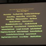 Gedenkveranstaltung Staatsministerium „Neuen Schloss in Stuttgart: Grußworte – Theresa Bauer, MdL, Ministerium für Wissenschaft, Forschung und Kunst. Theresa Schopper, Staatssekretärin für politische Koordination im Staatsministerium. Daniel Strauß, Vorsitzender des Verbandes Deutscher Sinti und Roma, Landesverband Baden-Württemberg e.V.. Uwe Neumärker, Direktor der Stiftung Denkmal für die ermordeten Juden Europas. Gesprächsrunde, zwei Generationen nach Auschwitz. Professor Esther Dischereit, Lyriker und Essayistin. Dotschy Reinhardt, Musikerin und Autorin. Musikalische Umrahmung, Blechbläserquartett des Landespolizeiorchester Baden-Württemberg.