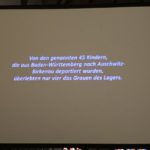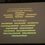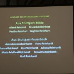 Ein Zeichen der Erinnerung am Nordbahnhof: Prof. Barbara Traub erinnert! Ab März 1943 wurden Sinti und Roma aus BaWü deportiert. Wir gedenken ihrer am 75. Jahrestag des 15. März 1943: an diesem Tag fand der erste und größte Abtransport statt. Von Stuttgart wurden 233 Sinti nach Auschwitz- Birkenau verschleppt. Fast alle wurden dort ermordet. Im Ganzen wurden während der NS-Diktatur etwa 500.00 Sinti und Roma umgebracht. In Birkenau braucht man heute mit einer Führung 8 Stunden um das riesige Lager zu erkunden. Leider setzt sich die Geschichte der Diskriminierung weiter fort: Auch nach 1945 wurden Sinti und Roma ausgegrenzt und diskriminiert, die gegen sie verübten Verbrechen erst spät erkannt anerkannt und deren Entschädigung verzögert. Wir erinnern uns an diesem 15. März der schrecklichen Verbrechen, die an Sinti und Roma verübt wurden. Wir lassen uns heute ermahnen zum Abbau von Vorurteilen und einer wachsenden Solidarität und Begegnung mit Sinti und Roma. Schüler der Hedwig-Dohm-Schule und der Alexander-Fleming Schule lasen alle 261 Namen der ermordeten vor. Kolleginnen und Kollegen der Yad-Vashem-Gruppe nahmen darn Teil. Anschließend wurde die Ausstellung in der Martinskirche eröffnet.