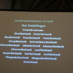 Musikalische Umrahmung: Duo Guttenberger. Organisiert von: Gedeninitiative Mahnmal/ Ravensburg, Magdalena Guttenberger – Christine Stuhler-Seitel. In Kooperation mit: Pfarrheim St. Jodok Seelsorgeeinheit Ravensburg Mitte, Viktoria Doris Graneret Stiftungsvorstand der Internationalen Jugendbegegnungsstätte in Oswiccim/Auschwitz, Studentenwerk Weiße Rose e.V., Arbeitskreis Sinti/Roma und Kirchen in Baden-Württemberg.