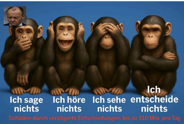Heißer 3. Weltkrieg – Kein Weltkrieg ohne Deutschland!: Der Kriegsführer Merz gibt die neuesten Losungen für den praktisch schon gewonnen Krieg gegen Russland aus: „Die Ukraine ist stärker als Russland!“ „Putin muss erkennen, dass er keine Chance hat, den Krieg zu gewinnen auf Kosten der „Europäischen Ordnung“, ihrer „Freiheit“ und ihrem „Frieden“. Das heißt, „Europa“ UND Deutschland werden ihn gewinnen! Das macht auch ein Artikel aus dem englischen „The Telegraph“ deutlich, wonach „Russische Soldaten ohne Helme und Schutz“ losgeschickt werden, um von den Ukrainern abgeschlachtet zu werden. Die „überflüssigen Soldaten werden so in den Fleischwolf gezwungen, weil ihre Kommandeure immer weniger Nachschub aus Moskau bekommen.“ Nach den „elektronischen Chips“, die die Russen aus ihren Kühlschränken ausbauen mussten, um sie in Panzer einsetzen zu können (von der Leyen) gleich der nächste Beweis, dass die russische Armee so gut wie geschlagen ist! Freut Euch: „WIR“ gewinnen diesen Weltkrieg dieses Mal! Unglaublich, diese CDU-BlackRock-Merz-Überheblichkeit und Arroganz.