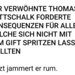 Es gibt keine Entschuldigung für die Beteiligung am Massenmord, vor allem an hilflosen Senioren und Kindern! Kinder sind nicht klimaschädlich, Senioren sind nicht faul, sie sind auch keine nutzlosen Esser und sie sind auch nicht klimaschädlich! Sie haben das Volk belogen und betrogen, Menschen verfolgt, bedroht und bestraft, Geld verschwendet und unserer Wirtschaft und dem Volk unglaublichen Schaden zugefügt! Mitwisser sind auch Mittäter! Wer mit Menschenleben spielt ist ein Mörder, auch die, die dabei mitgeholfen haben! Aufarbeiten-Aufklären-Verfolgen-Verhindern-ZAAVV. Sie haben mitgemacht! Sie wussten genau was sie tun! Das wird niemals vergessen, schon gar nicht verziehen! Es wird auch keine Versöhnung geben! Es gibt keine Versöhnung ohne Aufarbeitung. Gegen das Vergessen, bestrafe sie mit Verachtung, mit Konsum- und mit Veranstaltungs-Boykott. Sie wissen also, was ihnen bald blüht. Die Schadensersatzansprüche ergeben sich nach dem internationalem Recht aus der Verletzung des Lebens, des Körpers und der Gesundheit, sowie Haftung für sonstige Schäden, die sich aufgrund einer vorsätzlichen Pflichtverletzung ergeben. Auch Deutschland bekommt bald seine verdiente Abrechnung! Denk ich an Deutschland in der Nacht…Ich habe die Schnauze voll, dieses System ist zum kotzen, so klingt es aus dem Volk. Auf Wohlstand folgt Armut, Chaos und Elend. Die Krise ist da, weiterlesen. Sonderbericht-Gießen, hier. Merz in Panik, weiterlesen.