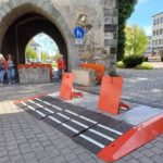 Diese Panzersperren sind für den Ravensburger Weihnachtsmarkt 2024 aufgestellt worden. OB-CDU-Rapp steht auf dem Marienplatz, auf der Bühne in Ravensburg, hebt die Hand und ruft laut „slava ukraini“, unglaublich.