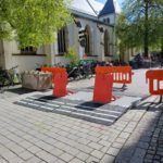 Diese Panzersperren sind für den Ravensburger Weihnachtsmarkt 2024 aufgestellt worden. OB-CDU-Rapp steht auf dem Marienplatz, auf der Bühne in Ravensburg, hebt die Hand und ruft laut „slava ukraini“, unglaublich.