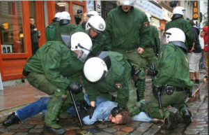 Die bedrohte Demokratie: Hände hoch Ordnungsamt Deutschland! Wenn die Polizei Konstanz, skrupellos mit BLINDEM Gehorsam, ALTE, gehbehinderte Menschen, wegen 50 Euro Bußgeld verhaftet, siehe Bild links, dann wiederholt sich unsere Geschichte, ein neues altes, grausames Deutschland, dass 4. Reich? Die Welt, Europa, Ravensburg und Deutschland bleiben auch 2017 mit der CDU, CSU, FDP, mit den Grünen und mit der SPD ein Narrenhaus der geistigen Armut. „Eine Welt ohne Gewalt ist möglich!“ Ein Land was ohne ein Spracherhaltung`s Gesetz ist, schafft seine Muttersprache, seine Kultur und sein Volk ab! Nur noch fremdsprachliche Begriffe, von der Werbung bis zur Umgangssprache. Auch wir freie Journalisten bestehen darauf: „Eine andere Welt ist nötig“ – helft uns dabei, sie möglich zu machen! Die Politik lässt uns wieder Mal keine Ruhe, jedes Jahr noch mehr Katastrophen, menschliche Verrottung und nichts ändert sich, weil es die Politik, unsere Politiker, nicht wirklich wünschen und dagegen arbeiten. Die Sehnsucht nach Freiheit ist ein Grundbedürfnis der Menschen, was von der Politik und Wirtschaft mit Füssen getreten wird, in Deutschland ist man nicht mehr frei, man wird von Psychopaten regiert? Das Volk muss sich vor dem Eingriff des Staates und der Wirtschaft schützen, die Überwachungs- und Maulkorbpolitik muss 2017 abgewählt werden. Ohne Freiräume kein Vertrauen zum Staat und zu seiner Gesellschaft!