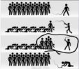 Kindesmisshandlung: Kinder gehen am Abstandsschnürchen, das Gesicht verhüllt, welches Atmen und Sauerstoffversorgung des Gehirns verhindert, Ketten und Peitschen sind nicht mehr nötig. Vorsicht, Sicherheit und Schutz, das sind die gebetartigen Formeln, Mantras, die die Gehirnwäsche vertiefen und alle Menschen funktionieren und bewegen sich roboterhaft in den ihn vorgeschriebenen Schranken und fühlen sich wohl und sicher. Sie erkennen auch an extrem menschen- und lebensfeindlichen „Maßnahmen“ keinerlei Angriff, Bedrohung, Zwangs- und Gewaltausübung. Gehirnwäsche, Angsterzeugung und deren Aufrechterhaltung werden durchgängig weiterpraktiziert, eine „neue, sichere Normalität“ wird freudig begrüßt und angenommen. Die total Fremdbestimmung und Versklavung, Willenlosigkeit, verlorene Menschenwürde, das zerbrochene Rückgrad, nichts davon wird von den Menschen noch wahrgenommen. Eigene Urteilsfähigkeit, die Fähigkeit, selbst zu denken, gesunder Menschenverstand, die Fähigkeit, das innere Gefühl wahrzunehmen und ihm zu vertrauen, alles ist weg „therapiert“ worden. Ihr ureigenen Instinkte, wie etwa der Instinkt, die eigenen Kinder zu schützen, sind verloren gegangen. Dies ist eine Art „Entfremdung“, die so vollständig und total und umfassend ist wie noch niemals in der Menschen-Geschichte.