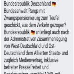 Es gibt Gesetze, die über dem deutschen Recht stehen: Deutschland und Ravensburg sind inzwischen zum internationalen Interesse geworden. Wir waren wieder im Auftrag, in der Woche 41, über 2500 km bundesweit unterwegs gewesen und sollten die Menschenrechtsverletzungen in Deutschland erneut dokumentieren, wir werden in den nächsten Tagen hier einige Fälle veröffentlichen. Wir haben erschütterndes festgestellt, wir hatten mehrfach Tränen in den Augen, was ist aus dem Deutschland geworden, Völkermord ist wieder ihr Auftrag. Zu unserer letzten Auftrags-Reise wurde diese Reise noch viel schlimmer, satanische Rituale, Folter, Misshandlungen, Nötigung, Bedrohungen, schwerer Körperverletzung, sogar Mordanschläge durch Kirchenmitarbeiter, Beamte, Ärzte, Krankenschwestern, Heimaufseher/innen, Lehrer/Innen, Wirtschaft und Politiker war alles mit dabei, sogar die kleine gekaufte Verkäuferin und die Bedienungen machen mit. Jeder darf sich in dein Leben einmischen, jeder darf jeden umbringen, mit welchen Mitteln auch immer, der Corona-Krieg macht alles möglich. Körperliche Kennzeichnungspflicht, Rassismus, Genozid, Euthanasie, bürgerlicher Tod, weiße Folter, eine endlose Obrigkeit, tiefer Staat wäre hier noch gelinde ausgedrückt, Merkel Deutschland, ihre kriminelle Vereinigung, die da oben, sie wollen viel verbrannte Erde, viele zerstörte Menschen hinterlassen, auch Massengräber, so wie im 3. Reich sind wieder erwünscht. Erschreckend war auch, wie in Behörden, Landkreise, Gemeinden, Kommunen, Gerichtsvollzieher, Bürgermeister, Richter/Innen, Polizei, Inkassos derzeit mit Menschen umgehen, wenn sie nicht spuren, werden Sie sogar wegen Geld mit Haft bedroht, zur Abschreckung willkürlich Handschellen angelegt, willkürlich in Wohnungen eingebrochen, die Gefängnisse sind wieder voll mit politischen Gefangenen, auch das wegsperren nur für GEZ und Vermögensauskunft nimmt erschreckend zu. Fälle die 5 und mehr Jahre zurückliegen werden plötzlich ausgegraben und mit den übelsten Methoden vom Staat und Wirtschaft eingetrieben, sie nehmen dabei sogar den Tod der Menschen in Kauf. Immer mehr Entmenschlichung und Spaltung, Enteignungen, Demütigungen, Ausgrenzungen soll es geben. Der internationalen Gemeinschaft, für die wir auch tätig sind, geht es darum, jeder wer die Maßnahmen seiner Regierung umsetzt, haftet auch persönlich-unlimitiert, nicht nur für alle gesundheitlichen Schäden, dieses haben wir namentlich dokumentiert und weitergeleitet. Die ersten Haftungsklagen dazu werden schon vorbereitet, die ersten internationalen Haftungsbescheide wurden an Schulleiter und auch an andere bereits ausgehändigt. Gleichzeitig muss jetzt auch das Militär eingreifen und mit der Verhaftungswelle beginnen. Sie gehören alle vor ein Tribunal, die Rädelsführer wie Söder, Merkel, Spahn, Lauterbach, Wieler, Drosten, Maas, Scholz, Baerbock, Lindner, Seehofer, Kretschmann, (Lucha), Kretschmer, Schwesig, Laschet und noch so einige zuerst, auch die Merkel Intendanten und ihre Sprecher gehören mit dazu. Was früher Mengele gemacht hat, macht heute Spahn, Merkel und ihre gekauften Politiker, Ärzte und Wissenschaftler, die gekauften Medien unterstützen sie dabei. Abdirahman Hussein von der UPU und Ursula Gillis von der ILO werden viel Arbeit bekommen, es wird auch von uns täglich gemeldet. Weiterlesen.