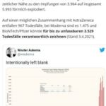 75jähriger: „Mit der Impfung“ gestorben – am Tag der Impfung. Ein 75jähriger Patient mit Vorerkrankungen ist geimpft worden. Nach wenigen Stunden durfte er das Krankenhaus verlassen, als festgestellt wurde, er habe keine Nebenwirkungen. Der Mann verstarb noch am selben Tag. Er litt offenbar an einer Krebserkrankung und hatte zuvor einige Male eine Herzattacke erlitten. Ein österreichischer Biologe, Clemens G. Arvay, kommentierte den Vorfall auf Facebook. Weiterlesen. In Deutschland wurde von Merkel eine Nachrichtensperre über Nebenwirkungen und Todesfälle nach Impfungen verhängt, ist für die gesamte EU vorgesehen. Die Corona-Wahrheit wird verschwiegen, Zensur und Corona-Lüge ist staatlich verordnet, Merkel hat sich heimlich mit gekauften Journalisten getroffen.