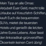 Ein Aufruf an alle Eltern: Nicht wir ALTEN haben die Kindheit von Greta gestohlen, die einzigen die Gretas Kindheit gestohlen haben, sind ihre Eltern… und warum? Sie haben zusammen mit Soros und Merkel ihre Tochter für niedrigen Ziele missbraucht und sind damit Millionäre geworden. Nein wir haben deine Jugend nicht zerstört. Wir haben eine Welt erschaffen, die bessere Lebenschancen für junge Menschen bietet als jemals zuvor in der Geschichte, so schreibt es auch der Grüne Oberbürgermeister Palmer aus Tübingen. Deshalb fordern wir alle Eltern auf mit ihren Kindern nach dem Grünen Kretschmann-Baerbock-Brugger-Vorbild konsequent zu handeln: „Danke Greta, danke Luisa Neubauer … thank’s f4f! Weiterlesen.