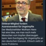 Zuckerbrot und Peitschentaktik: Gebetsmühlenartig wiederholen die Massenmedien Behauptungen, die gelogen sind! So funktioniert eine psychologische Kriegsführung, auch Hitler hat diese Taktik angewandt und Merkel hat sie übernommen. Die neuen Feindbilder der Volksaufhetzung sind geschaffen, durch eine verlogene ARD-Strobl Staatspropaganda. Weiterlesen. Die Politiker und die Medien wollen mit ihrer Hetzkampagne verhindern, dass die Ungeimpften die gesunden und die Geimpften dann auf sie neidisch sind, wenn schon impfen, dann Krankheit für alle. BMG: Eine Impflicht wird es nicht geben. Nachrichten und Beiträge, die etwas anderes behaupten, sind falsch. Wie verlogen und Hinterlistig kann man noch werden, wenn über die Hintertür längst die Impflicht befohlen wurde, Zwang, Ausgrenzung, Diskriminierung und Bedrohung gegen gesunde Ungeimpfte bedeutet doch Impflicht, sonst darfst du am Leben, an der Arbeitswelt nicht mehr teilhaben.