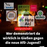 Antifa ist keine Meinung, sondern eine Geisteskrankheit! Auch die Omas gegen (von) Rechts gehören mit dazu. Deutschland steht wieder einmal im Mittelpunkt der Weltöffentlichkeit. Unser Diplomat ist entsetzt. Vermummte Chaoten, politisch bezahlte Antifa-Terroristen? Damals war es die SA oder bis 1989 die Stasi. Die damalige Sturmabteilung (SA) war die paramilitärische Kamporganisation der NSDAP während der Weimarer Republik und spielte als Ordnertruppe eine entscheidende Rolle beim Aufstieg der Nationalsozialisten. Was ist die Antifa heute? Hilft sie beim Aufstieg der Linken? Die damalige Linke-SPD hat Hitler zur Macht verholfen und wurde dann zur NSDAP? Weiterlesen. So lief der Tag in Gießen am 29.11.25. – Gießen im Ausnahmezustand. Die Altparteien, die Polizei und die Propaganda-Medien-ARD-ZDF sind anscheinend von der bestellten Antifa-Gewalt begeistert? Tag der Gewalt: Gründungskongress der neuen AfD-Jugend. Heftige linksextreme Ausschreitungen. Ein neuer AfD-Jugendchef, Jean-Pascal Hohm wird Chef der AfD-Jugendorganisation „Generation Deutschland“.