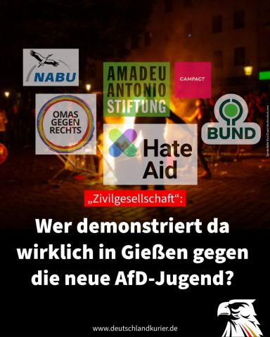 Man kann die Uhr danach stellen: Immer, wenn es einen Anlass gibt, um gegen die AfD auf die Straße zu gehen, rottet sich bundesweit ein linker und linksextremistischer Flashmob zusammen. Dann ist auch die gewaltbereite „Antifa“-Szene nicht weit. Dann sammeln sich die „zivilgesellschaftlichen“ Sturmtruppen. Es ist die Fortsetzung der Regierungspolitik mit anderen Mitteln, den Mitteln der Straße – getreu dem Motto: Wes Brot ich ess, des Lied ich sing! Ex-„Bild“-Chef Julian Reichelt bringt es auf den Punkt: „Die Menschen sollen nicht merken, dass sie es mit der Regierung zu tun haben.“ Klar, dass auch die Gewerkschaften mitmarschieren. Die Demonstranten, die mit Gewalt den Bundesparteitag der AfD Anfang des Jahres in Riesa verhindern wollten, kamen aus ganz Deutschland. Organisiert und finanziert wurde die Anreisen u.a. durch Verdi (inzwischen praktisch eine Art Hausgewerkschaft der „Grünen“) und den SPD-nahen DGB. Beide sind auch in Gießen wieder mit von der Partie. FAZIT: Anders als es ARD, ZDF und Mainstream-Medien glauben machen wollen, sind die Aufmärsche der „Zivilgesellschaft“ keineswegs der Ausdruck eines Mehrheitswillens. Es ist der Psychoterror einer Minderheit – angeführt und aufgestachelt von staatlich bezahlten Akteuren, die es unter tatkräftiger Mithilfe von „Tagesschau“, „heute“ & Co. geschickt verstehen, den von ihnen inszenierten Protest wahlweise als „Aufstand der Mehrheit“ oder „Aufstand der demokratischen Mitte“ zu propagieren. „Welt“- Kommentator Andreas Rosenfelder hat den Etikettenschwindel durchschaut: Was sich da unter dem Deckmantel von „Zivilgesellschaft“ und „Retter der Demokratie“ durchorganisiert zusammengefunden hat, sei ein Eingriff in die demokratische Willensbildung – „mit zweckentfremdeten Steuermitteln“. Von „Omas gegen Rechts“ bis zur „Amadeu-Antonio-Stiftung“, von „HateAid“ bis „Campact“, von „BUND“ bis „NABU“ kommt eine Struktur von Vereinen und Verbänden ans Licht, die vor allem eines gemeinsam haben: Staatsknete und natürlich das ideologische Kampfbanner der Regenbogen-Fahne! Info.