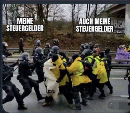 Linksradikale blockieren Autobahn bei Gießen: Polizei setzt Wasserwerfer ein. Anmerkung: Wieso besprüht die Polizei diese Faschisten nur einmal mit einem harten Strahl, und der ganze Schmutz ist damit weggespült?
