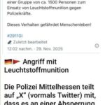 Beste Videoaussage der Polizei, bei der Demoauflösung in Gießen:…“Ihre Versammlung wurde als nicht friedlich eingestuft“…! Komisch, der Mainstream berichtete über „friedliche Demonstranten“, finde den Fehler…