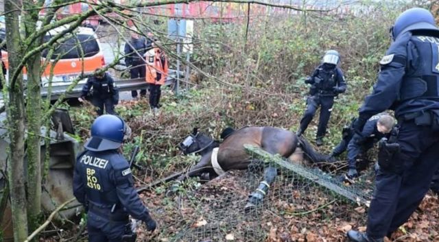 Polizei in Gießen wird angegriffen und muss flüchten. Terror auf den Straßen, den man uns als Kampf für UNSEREDEMOKRATIE verkaufen will. Währenddessen versuchen sich Unionspolitiker mit Pseudo Kampfansagen und Verurteilungen in Unschuld zu baden! Gewaltaufrufe der Antifa bei Demo: Nazis jagen ist nicht schwer. Mit Hammer, Sichel und Gewehr. Linksterroristen haben in Vergangenheit immer wieder vermeintliche „Nazis“ mit Hammer schwer verletzt. Gießen: Die linken Faschisten machen vor nichts halt. Antifa-Anhänger stoßen Pferd die Böschung runter! Vom Hass getrieben, greifen die Linksextremisten in Gießen alles an, was ihnen in den Weg kommt. Selbst ein armes Pferd fiel der Antifa zum Opfer? Das Pferd stürzte einfach so mir nichts dir, weil die so friedlichen Antifa-Demonstranten den Anweisungen der Polizei sofort wehrlos Folge geleistet haben? Das entsprechende Polizei-Video würden wir gerne einmal sehen. Pferde töten gegen Rechts? In Gießen lieferten sich am 29.11. linksextreme Gruppen bei zahlreichen Demos gegen die Gründung der „Generation Deutschland“ regelrechte Straßenschlachten mit der Polizei. Neben mehreren verletzten Beamten gab es ein Opfer, das besonders ins Herz trifft: Ein Polizeipferd stürzte einen Hang hinunter und blieb reglos liegen. Die ersten Bilder des Tieres lösten sofort Gerüchte aus, es sei schwer verletzt oder gar tot. Mittlerweile meldet die Polizei jedoch Entwarnung: Das Pferd hatte „nur“ einen Schock erlitten und ist wieder wohlauf.