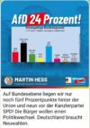 Wo wird die Hetze enden?: Wird bald Jagd auf Andersdenkende gemacht? In der Schwab-Stadt Ravensburg findet das bereits statt, dazu wird die Justiz und die Polizei missbraucht. Die Medienlügenkampagne gegen eine demokratisch, gewählte Partei muss ebenfalls beendet werden. Wie dämlich ist Deutschland, wieder in Stasi oder in Nazi-Zeiten zurückzufallen? Martin Hess: Die Hetze, mit der derzeit versucht wird, unsere demokratisch legitimierte Partei zu diffamieren, nimmt erschreckende Ausmaße an. Das widerwärtige Vorgehen der Linksrotgrünen offenbart ihr mangelndes Demokratieverständnis. Aber auch die CDU und die CSU steigen in dieses Spiel ein. Das ist unwürdig und soll natürlich nur verhindern, dass man selbst in die Schusslinie der „Woken“ gerät. Doch wir lassen uns davon nicht beeindrucken. Wir machen weiter, denn es geht um alles. Es geht um die Zukunft unseres Landes und um die Zukunft unserer Kinder und Enkelkinder! Omas gegen rechts, Gewerkschaften gegen rechts, Kirchen gegen rechts, Kinos, Hotels, Restaurants und sogar Kliniken steigen mit ein in dem von der Linksparteienfront hysterisch herbeigetrommelten „Kampf gegen Rassismus und Haß“. Um dort aus zehntausenden Kehlen zu skandieren: „Die ganze Welt haßt die AfD!“ Um hinter Plakaten zu laufen, auf denen steht: „AfDler töten, Nazis abschieben“ wie in Aachen. Es herrscht wieder Lynchstimmung in Deutschland. Die Staatsmedien heizen die aufgeladene Stimmung, die Spaltung und die Hatz gegen Andersdenkende kräftig an. Und sie lügen, daß sich die Balken biegen. Wo soll diese gezielte Verhetzung zehntausender Menschen gegen AfD-Wähler, gegen Nachbarn, gegen Freunde, gegen die Familie noch hinführen? In Gewalt, Chaos und Bürgerkrieg? Wehren Sie sich dagegen. Protestieren Sie hier mit allem Nachdruck gegenüber Journalisten, Meinungsmachern, Chefredaktionen und Programmdirektoren: Dieser Meutenjournalismus muss aufhören, sofort, bevor es noch Tote gibt. Diese Regierung befindet sich im Endstadium ihrer Existenz. Das ständige Eskalieren, das endlose Propagandarauschen der Medien, die Meinungsmanipulation: All das dies zieht nicht mehr. Es geht schon zu lange. Schon unter Kanzler Schröder fing der Lügenkampf gegen Rechts an. Mit Kanzler Scholz, mit Steinmeier und mit Pistorius geht es wieder weiter. Die Ampel muß weg. Deutschland braucht den Neustart. Was wir nicht brauchen, ist unredlicher Kampagnenjournalismus und linker Medienaktivismus. Petition.