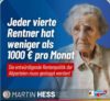 Martin Hess: Jedem vierten Rentner stehen monatlich weniger als 1.000 Euro Nettoeinkommen zur Verfügung. Diese unsäglichen Zustände führen dazu, dass die von den Altparteien mitverschuldete Inflation und die Preisexplosionen vor allem den Senioren schwer zu schaffen machen. Sie können nicht nur ihre täglichen Bedarfe kaum noch decken, sondern sind von Armut bedroht oder längst betroffen. Das ist eine Schande! Es ist der Umgang mit den schwächsten Mitgliedern einer Gesellschaft, der die Qualität einer Regierung offenbart. Die Ampelkoalition verschließt konsequent die Augen vor der untragbaren sozialen Situation in diesem Land. Prominentestes Beispiel ist die Grünen-Vorsitzende Ricarda Lang, die bei Lanz die Durchschnittsrente auf 2.000 Euro schätzte. Traurige Realität ist jedoch: Nur ein kleiner Bruchteil der Ruheständler in Deutschland schafft das. Man müsste dafür 45 Jahre lang mindestens 4.000 Euro brutto verdienen. Als Partei der Leistungsgerechtigkeit ist es für uns selbstverständlich, unseren Ältesten einen Lebensabend in Anstand zu ermöglichen. Der entwürdigenden Rentenpolitik der Altparteien erteilen wir daher eine klare Absage. Deshalb muss endlich wieder das Prinzip gelten, dass sich Arbeit lohnen muss. Wer über Jahrzehnte in die Rentenkasse eingezahlt hat, muss auch bei einem niedrigeren Einkommen bessergestellt werden als Personen, die kaum etwas oder gar nichts zum Gemeinwohl beigetragen haben. Soziale Gerechtigkeit ist ein integraler Bestandteil unserer Politik und diese Gerechtigkeit muss in Deutschland wieder selbstverständlich werden. Deshalb AfD!