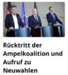Kommt die nächste Täuschung? Wir dürfen nicht ohne Regierung sein! Aus ihren Plänen geht hervor, alle Länder Regierungsunfähig zu machen und Führungslos! Das bedeutet, dass wir so lange Regierungsunfähig sind, bis alle anderen Ländern es auch sind. Wir hatten diesen Zustand schon einmal. Dies ist nicht nur auf Wikipedia sporadisch nachzulesen, sondern steht in einem alten Buch jener Zeiten. Es beginnt damit Deutschland und Österreich Regierungsunfähig zu machen, wie in Amerika zu sehen, weswegen Trump kämpft und Asien. Wenn also Deutschland fällt, weil es Regierungsunfähig ist, entsteht Chaos. Sie ließen uns so lange Regierungslos, während die Kontrolleure sich Frankreich vornehmen, Italien usw. Die Massen würden das nicht überleben und damit rechnen sie, während sich ihre Marionetten in Bunker zurückziehen. Wenn dann alle Länder Regierungsunfähig sind, kommen sie mit einem daher, der das ganze Chaos beendet. Dieser soll dann der Herrscher über Europa sein. Dann folgt Amerika, dann Asien. Dann streiten die sich und es kommt zu einem Weltherrscher. So haben sie sich das gedacht! Es kann also sein, dass die AfD den Plan kennt, denn sie waren 2017 bei Trump und dass wissen wir aus bester Quelle. Womöglich setzt die AfD und Österreich alles daran, um unsere beiden Länder regierbar zu halten. Es ist immens wichtig, allerdings sollten wir darauf drängen, keine Neuwahlen, sondern per einstweiliger Verfügung die AfD die Regierungsgeschäfte kommissarisch übernehmen zu lassen und die Ampel sich einem Untersuchungsausschuss zu unterstellen, aufgrund von Täterschaft bzw. Mittäterschaft von Straftaten sowie Untersuchungen auf geistige Zurechnungsfähigkeit bzw. Unzurechnungsfähigkeit. So tun sie es mit uns auch, wenn wir auf unsere Souveränität bestehen. Wir sollten auf eine umfangreiche Untersuchung drängen – das wird nämlich umgangen, so wie wir wählen und wer diese Ampel in den Bundestag setzte. Hinzukommt, sie müssen das Volk bei allen Entscheidungen fragen, weil sie nicht gewählt wurden, sondern nur kommissarisch das Volk vertreten. Die Immunität eines Politikers endet, so ihm Kriminalität nachgewiesen wurde. Da die weisungsgebundenen, politisierten Gerichte unsere Politiker freisprechen, bleibt nur die Straftat des Volksverrats, nach internationalem Recht verlieren auch Richter ihre Immunität, bei Straftaten und bei willkürlichen Falschurteilen. Das ist offenkundig über den Migrantenstrom, als auch über die Geldverschleuderung, das zur Verarmung unseres Volkes beiträgt zur Spaltung und Hass, den diese Ampel offen gegen uns ausspricht. Daran können wir knüpfen, denn dies ist beweisbar. Diese Schergen in der Politik halten sich weiterhin versteckt.