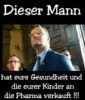 Die Staatsmedien, die Panikmacher moderieren: Nach der Meldung von Denunzianten haben sich plötzlich, ohne einer Inkubationszeit, Menschen beim Gottesdienst und in einer Gaststätte, von heute auf morgen, mit der sogenannten Corona-Grippe angesteckt. Diese Art vom Meldungen dienen der Politik für eine zweite Welle, die sie schon vorgestern gewusst haben das sie kommt. Alles Helleseher und Glaskugelleser in der Politik, Wirtschaft, Pharmaindustrie und bei einigen Merkel-Wissenschaftlern? Das sollte jeder wissen, Merkel-Spahn-Gates und Freunde, sie wollen 83 Millionen „Deutsche Zwangsimpfen“ lassen! Nach der Zwangsimpfung werden die Nebenwirkungen, wofür natürlich niemand haften muss, viele Menschen erst richtig krank und müssen mit dauerhaften Folgeschäden rechnen. Vor allem werden ALTE Menschen mit erheblichen Vorerkrankungen wegsterben wie die Fliegen. Das ist das mörderische Ziel dieser Corona-Kriegs-Politik, eine neue Art von Euthanasie, ein glatter Mord und schwere Körperverletzung. Jeder Mensch trägt zum Beispiel Herpesviren in sich, brechen diese aus, ist es auch ansteckend übertragbar, davon wurde aber nie gesprochen, keiner hat sie deshalb in Quarantäne geschickt, so geht es auch bei anderen Viren die der Mensch in sich trägt, ohne das eine Volksgefahr davon ausgeht. Zur Zeit laufen große Werbeaktionen für das Medikament Metformin, es soll den Tod beschleunigen, für Patienten mit nur einer Niere ist es tödlich und Voltaren, in der Werbung die Oma mit Mobs-Bruno. Voltaren fürs Knie, greift aber das Herz an und schädigt es. Von wegen Schaden vom Volke abzuwenden, alles politisch so erwünscht, unsere Politiker/innen, sogar Beamte und Teile der politisierten Wissenschaftler gehen buchstäblich für Merkel und Spahn über Leichen und sahnen dabei kräftig ab, die Krankenkassen spielen dabei mit, davor muss sich die Bevölkerung schützen, deshalb gehen sie für ihre Grundrechte, für die Unversehrtheit des Körpers, berechtigt auf die Straße.
