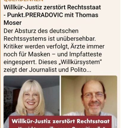 Die Willkür-Justiz zerstört Rechtsstaat! Geht SIE für die Politik, für Politiker, für die Alt-Parteien buchstäblich über Leichen? Es ist verrückt, wie manche Menschen keinen Beweis brauchen, um eine Lüge zu glauben, aber endlose Beweise verlangen, um die Wahrheit zu akzeptieren. Die Schadensersatzansprüche ergeben sich nach dem internationalem Recht aus der Verletzung des Lebens, des Körpers und der Gesundheit, sowie Haftung für sonstige Schäden, die sich aufgrund einer vorsätzlichen Pflichtverletzung ergeben.