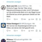 Traumberuf Polizei: Vor den Zug gestoßen! 12jähriger tot! Polizei verschweigt Täter-Herkunft! Ein Zwölfjähriger ist an einem Freitagmittag in Stuttgart vor die nahende Stadtbahn gestoßen worden. Für den Jungen kam jede Hilfe zu spät. Er wurde von einem 13-Jährigen zuvor gestoßen, ein Streit soll vorangegangen sein. Im Netz gehen jetzt die Wogen hoch, weil sich die Polizei Stuttgart weigert, die Nationalität des jungen Täters zu nennen! Gebetsmühlenartig wiederholen die Polizeisprecher gegenüber Medien und Nutzern im Netz diesen Satz: „Wir nennen die Staatsbürgerschaft nur, wenn die Haft geprüft wird.” Weiterlesen. Ein Nutzer schreibt: „Während im Bundestag SPD und Grüne für offene Grenzen kämpfen, stößt ein ‚kultureller Bereicherer’ ein anderes Kind vor die Bahn, wohl ein ‚armer Schutzsuchender‘!“ Der Kommentar blieb ohne Widerspruch, wurde später gelöscht. Ein X-User protestiert: “Was soll dieser herablassende, obrigkeitsstaatliche Ton? Angesichts der explodierenden, mit Migration in Verbindung stehenden Gewaltkriminalität haben die Bürger ein Recht zu erfahren, aus welchem Milieu heraus so eine extreme Tat verübt worden ist.” Und ein andere X-Posterin meint: “Warum können Sie der Bevölkerung bei einem so eiskalten, grausamen, furchtbaren Mord nicht einfach die Fakten mitteilen?”
