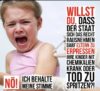 Eine Werbekampagne der Pharmaindustrie und der WHO. Sie machen sich über den Herzstillstand nach der Impfung lustig.