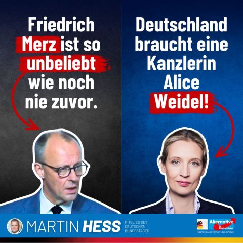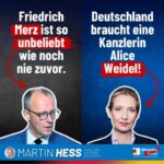 Martin Hess: Kanzler Friedrich Merz stürzt in Umfragen dramatisch ab. Nur noch 23 Prozent der Deutschen sind mit ihm zufrieden – fünf Prozentpunkte weniger als im Januar. Merz kann es einfach nicht. Union fällt hinter AfD zurück – große Unzufriedenheit mit Merz. In einer Umfrage verliert die Union die Spitzenposition. Derweil zeigen sich die Menschen immer unzufriedener mit dem Kanzler und der Regierung. Zeit für Alice Weidel! Weiterlesen. Fakt ist auch: Deutschland zersetzt sich und schafft sich ab. Wir betreiben eine unkontrollierte Masseneinwanderung statt einer bedarfsorientierten Einwanderung.