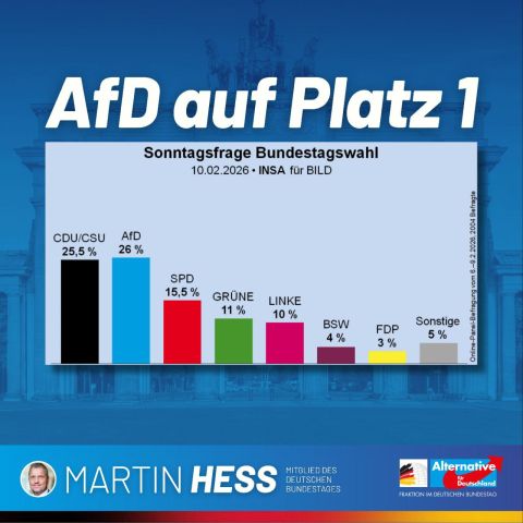 AfD: Es ist ein absoluter Skandal und eine Kapitulation unseres Rechtsstaates vor der eigenen Haustür! In Hessen verbreitet ein syrischer Asylbewerber seit Monaten blanken Terror, droht mit Mord, der Vernichtung ganzer Familien und dem Ende aller Deutschen. Dass ein Mann, der unsere Frauen als „Schlampen“ beschimpft und das christliche Abendland verhöhnt, hier noch immer Narrenfreiheit genießt, ist ein Schlag ins Gesicht jeder anständigen Familie in unserem Land. Wenn die Polizei den Bürgern ernsthaft rät, die „Straßenseite zu wechseln“, statt den Gefährder sofort aus dem Verkehr zu ziehen, dann hat dieser Staat seine vornehmste Pflicht – den Schutz der eigenen Bevölkerung – schlichtweg aufgegeben. Wir lassen uns nicht länger in unserer eigenen Heimat einschüchtern, während radikale Verächter unserer Kultur auf Steuerzahlerkosten versorgt werden. Die Fakten liegen klar auf dem Tisch: Der Fall Khaled K., der bereits 2016 im Zuge der großen Migrationswelle zu uns kam, zeigt das ganze Ausmaß des Behördenversagens. Über 100 E-Mails mit grausamen Gewaltfantasien wurden an die Verwaltung geschickt, doch trotz zahlreicher Strafanzeigen wegen Beleidigung, Bedrohung und Sachbeschädigung sieht sich die hessische Landesregierung offenbar machtlos. Das Bundesamt für Migration und Flüchtlinge lässt wertvolle Zeit verstreichen, während die Gefahr eines Nachahmungstäters des schrecklichen Anschlags von Magdeburg täglich über den Bürgern schwebt. Es ist die bittere Folge einer verantwortungslosen Politik, die kriminelle Gefährder gewähren lässt, anstatt die Sicherheit im öffentlichen Raum mit aller Härte durchzusetzen.