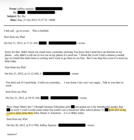 Epsteins Schatten reicht bis zum Dalai Lama?: Die spirituelle Ikone des Mitgefühls und des Friedens, der Dalai Lama, erscheint nun neben Donald Trump, Elon Musk, Bill Gates, Reid Hoffman und anderen hochrangigen Persönlichkeiten im neuesten Schwung von Jeffrey-Epstein-E-Mails und -Dokumenten. Der Name des Lama taucht laut mehreren Medienberichten mindestens 169 Mal in dem neu veröffentlichten Material auf. Einige Korrespondenz datiert zurück bis Oktober 2012, was darauf hindeutet, dass der tibetisch-buddhistische Führer Epstein getroffen hat und erwartet wurde, an einer Veranstaltung mit ihm teilzunehmen.