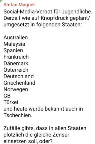 Überwachung im Netz: Zensur für Kinder? Die CDU plant ein 16-Jahre-Alterslimit für Social Media. Und das alles angeblich „für die Kinder“. Doch was steckt wirklich dahinter? Verpflichtende Ausweiskontrollen und Altersprüfungen – das klingt eher nach Kontrolle als nach Schutz. Jugendliche werden entmündigt, während sie lernen sollten, mit digitalen Risiken umzugehen. Anonymität? Weg damit. Statt Lösungen für Plattformen zu finden, wird die Bürgerüberwachung vorangetrieben. Und das alles beschlossen auf dem CDU-Parteitag im Februar 2026. Dass die jungen Kinder und Teenager unter uns sehr viel weniger Social-Media schauen sollten ist absolut richtig – doch zum Preis der tiefen Überwachung? Ich finde hier sind die Eltern gefragt, die ihren Kindern die Gefahren beibringen und VORBILDLICH vorleben, wie es geht. Quelle. Nur die dümmsten Kälber wählen ihre Schlächter selber! Dann geht mal schön ab 16 wählen, herzlich Glückwunsch und gute Besserung.